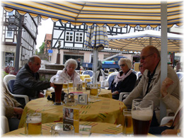 Bei der anschließenden Siegerehrung ging es in der Hotelbar feucht-fröhlich her. Durch den Habischtswald führte uns die Reise nach Kassel-Wilhelmshöhe in den Bergpark Wilhelmshöhe u.a. mit Herkules, barocken Wasserspielen und dem Schloss. Die Besucherplattform am Fuße der Herkules-Pyramide bot eine beeindruckende Aussicht über den Park und die Stadt Kassel. Schon Georg Dehio, Nestor der modernen Denkmalpflege, sagte über den Park: vielleicht das Grandioseste, was irgendwo der Barock in Verbindung von Architektur und Landschaft, gewagt hat. Wo Werra sich und Fulda küssen, sie ihre Namen büßen müssen. Und hier entsteht, dank einem Kuss, deutsch bis zum Meer, der Weser Fluss. Diese einmalige Naturschönheit ist das Eingangstor zur Stadt Hannoversch Münden, eine mittelalterliche Fachwerkstadt von europäischem Rang, die bei den Wanderern einen großen Nachhall hinterließ. Der letzte Tag unseres Ausfluges galt dem größten Kurpark Europas im Bad Wildunger Stadtteil Reinhardshausen (Landesgartenschau 2006). In der "Grünen Brücke", wie der Park genannt wird, führen 6 km Wander- und Spazierwege vorbei an Wandelhalle, heilkräftigen Quellen, Brunnen, Fontänen und Teichen, sowie an zahlreichen künstlerischen Plastiken. Den Abschluss bildete ein gemeinsames Abendessen im bekannten "Waffelhaus" in Reinerzhagen. Mit vielen Eindrücken behaftet, kehrten wir am späten Abend zurück. Ich bedanke mich bei allen Spendern und Helfern, die zu diesem Ausflug beigetragen haben. Text: Herbert Meierwisch Fotos: Franz Dimler |
