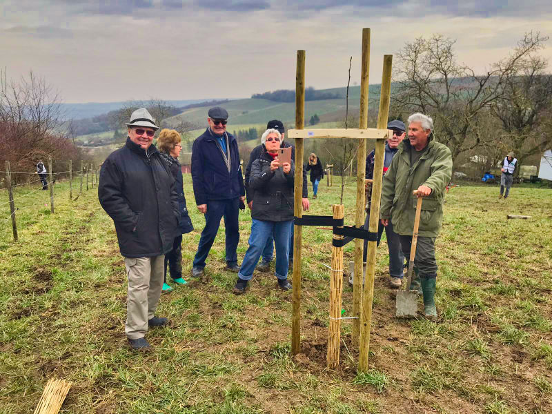 ![]() Nach einem ganzen Jahr Wartezeit war es am 8.2.2020 endlich soweit! Unsere reservierten Bäume sollten endlich von der Baumschule in den Zornheimer Bürgerwald umgesiedelt werden. Bei herrlichem Wetter trafen sich eine ordentliche Anzahl von kraftstrotzenden Wanderern, bewaffnet mit Spaten, Säge und Hammer um ihr Tagwerk zu verrrichten. Ein Speierling, eine Birne und eine Linde warteten darauf endlich in die Erde zu kommen. Dazu war Löcher graben, Pfosten einschlagen und Bäume sichern angesagt. Wie routinierte Waldarbeiter wurde zu Werke gegangen und nach fast drei Stunden war dann „Spaten in Ruh“. Ziemlich verdreckt aber bestens gelaunt begaben wir uns danach zu Kaffee und Kuchen. Ein freundlicher Mitstreiter spendierte sogar noch einen Himbeerschnaps um einen drohenden Muskelkater vorzubeugen. Ich hätte nicht gedacht, dass es so viel Spaß macht und sage nochmals Danke an alle Mitstreiter. Ein paar Fotos von der gelungenen Aktion gibt es natürlich im Fotoalbum. fd |